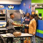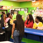 - Darius Clark, sophomore information systems major from Grand Prairie, talks with other attendees at BSU’s Skate Night. (Photo by Sarah Eunyoung Thompson)