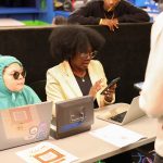 - Logan Beckwith, vice president of BSU and sophomore multimedia major from Forney, and Tamil Kayode-Adele, president of BSU and junior criminal justice major from Midland, welcome guests at the check-in desk. (Photo by Sarah Eunyoung Thompson)
