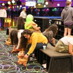- Students sit down to put on their skates at BSU’s Skate Night. (Photo by Sarah Eunyoung Thompson)