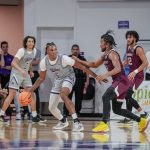 - Yaniel Rivera, sophomore guard from Bayamon, Puerto Rico, defends the ball from his opponent. (Photo by Daniel Curd)