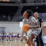 - Rich Smith, junior guard from Bronx, New York, makes a penalty shot. (Photo by Makayla Clayton)