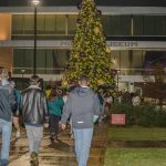 - Students walk to Gata Fountain to take pictures at the Christmas tree. (Photo by Daniel Curd)