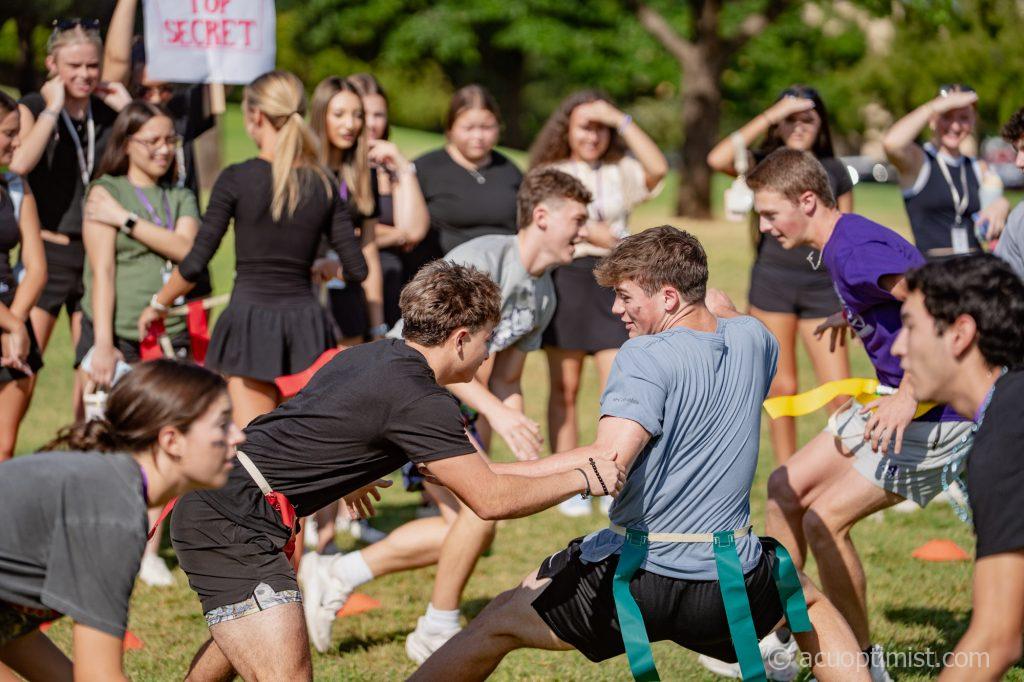 Ben Porter, freshman management major from Argyle, dodges an attack during a game of flag tag during the annual Mentor Group Olympics. (Photo by Daniel Curd)