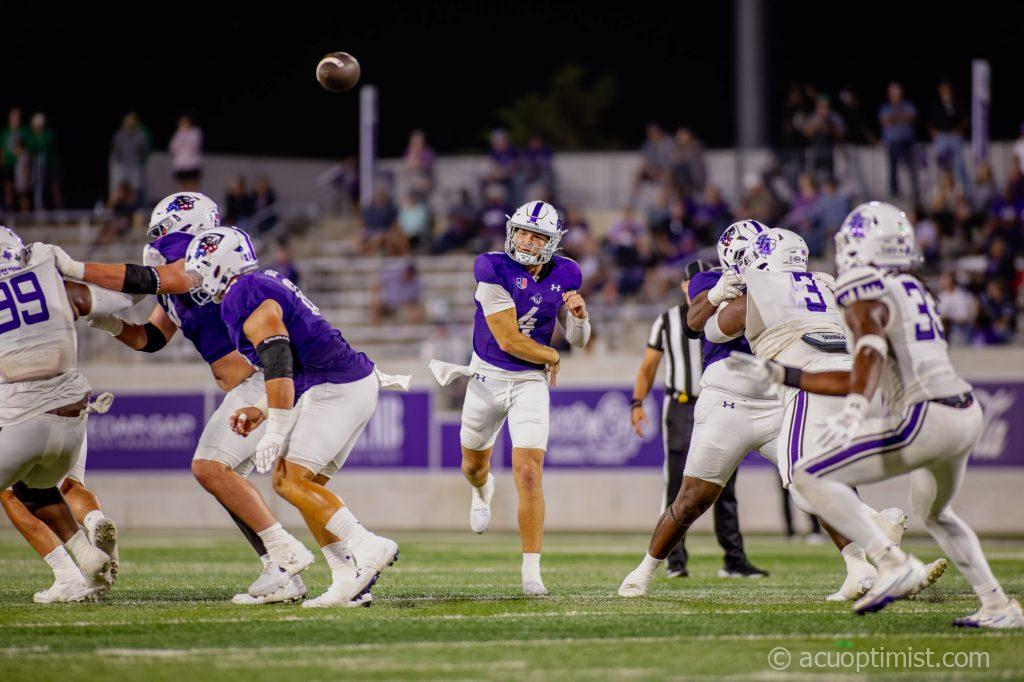 Stone Earle, redshirt senior quarterback from Fort Worth, throws the ball downfield. (Photo by Daniel Curd)