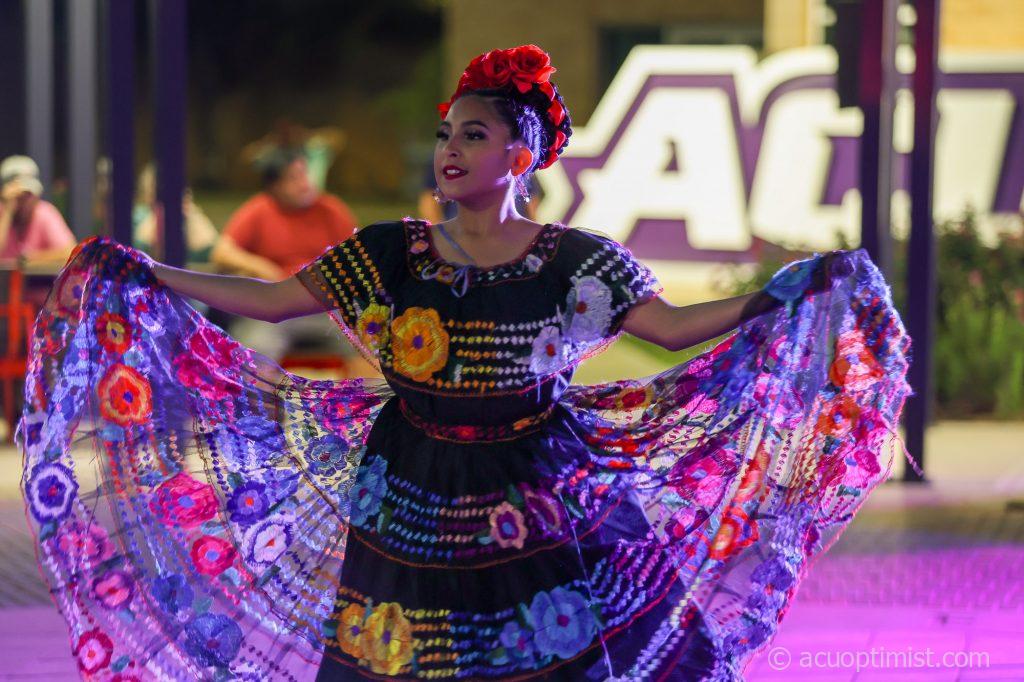 October 6, 2025 by Callie Leverett Leave a Comment A dancer holds her detailed, floral dress out as she waits to begin her performance. (Photo by Callie Leverett)