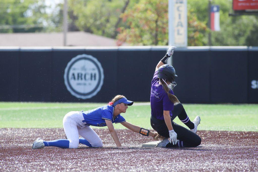 October 14, 2025 by Steven Infante Leave a Comment An ACU runner slides past a defender to safely steal second base. (Photo by Steven Infante)