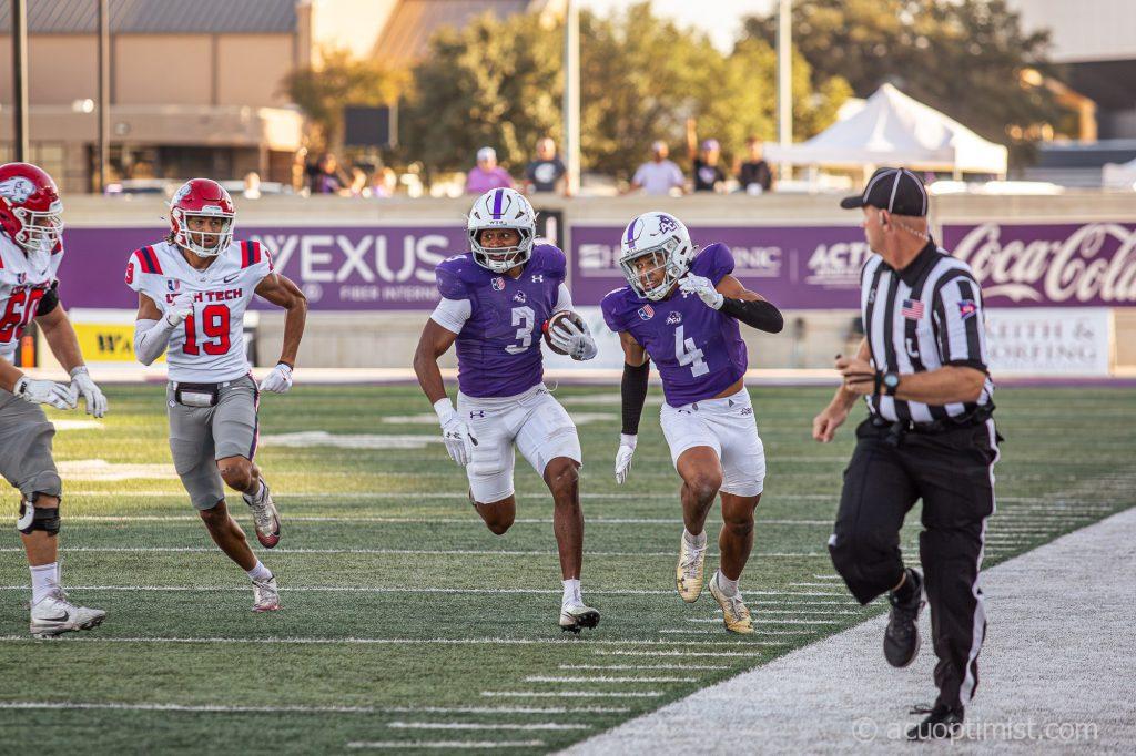 November 9, 2025 by Callie Brimberry Leave a Comment Dorian Plumley, redshirt senior safety from El Reno, Oklahoma, and Tyson Williams, junior defensive back from Bixby, Oklahoma, run down the sideline. (Photo by Callie Brimberry)