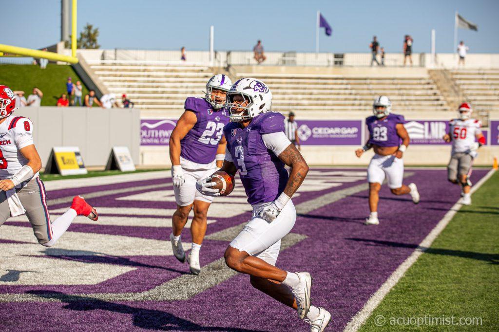 November 9, 2025 by Callie Brimberry Leave a Comment Dorian Plumley, redshirt senior safety from El Reno, Oklahoma, scores a touchdown. (Photo by Callie Brimberry)