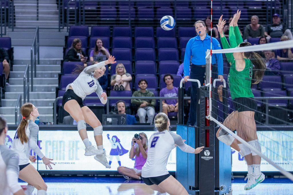 November 18, 2025 by Steven Infante Leave a Comment Aubrey Beaver, junior outside hitter from Murrieta, California, hits the ball over the net. (Photo by Steven Infante)