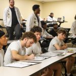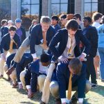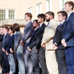 - The newest Squires of Nu Kappa Psi listen to directions in the Onstead-Packer Biblical Studies Building. (Photo by Sarah Eunyoung Thompson)
