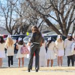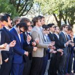- Brats form a line on the steps of the Hardin Administration building. (Photo by Sarah Eunyoung Thompson)