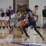 - Dontrez Williams, freshman guard from Sikeston, Missouri, attempts to make his way past UTA’s defense. (Photo by Steven Infante)