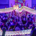 - A member on the Texas Dragon/Lion Dance Team holds up a portion of the dragon during a dance routine. (Photo by John Stai)