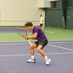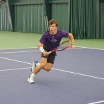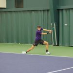 - Daniel Morozov, senior from Joliet, Illinois, focuses to return the serve. (Photo by Steven Infante)