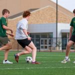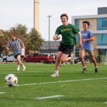 - Cooper Gartrell, sophomore marketing major from Pearland, faces defenders on the field. (Photo by Sarah Eunyoung Thompson)