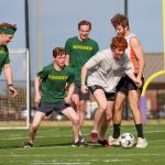 - Isaac Newberry, junior Bible and Ministry major from Edmond, Oklahoma, dives for the ball before it enters the goal. (Photo by Sarah Eunyoung Thompson)