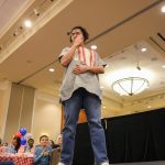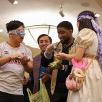 - Takuma Tsuneki, graduate student of Masters of Divinity from Abilene, plays a food guessing game at the end of the International Food Festival. (Photo by Sarah Eunyoung Thompson)
