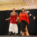- Elaine Carrillo Vazquez, senior multimedia major from El Paso, and Eva Carrillo Vazquez, senior social work major from El Paso, walk down the runway during the fashion show. (Photo by Sarah Eunyoung Thompson)