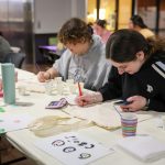 - A student places a stencil on her tote bag. (Photo by Sarah Eunyoung Thompson)