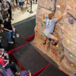 - Mateo Giron, senior accounting major from Magnolia, navigates around the bouldering course. (Photo by Daniel Curd)
