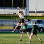 - A member of Galaxy jumps into the air to grab the frisbee. (Photo by Daniel Curd)