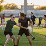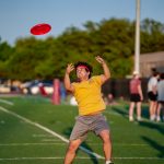 - Alex D’Agostino, junior engineering major from Richardson, jumps up to grab the frisbee. (Photo by Daniel Curd)