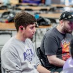 - Ethan Doyle, Fortnite team captain and freshman accounting major from San Antonio, plays against Cameron Traylor, Esports vice president and junior accounting major from Weatherford. (Photo by Daniel Curd)