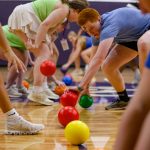 - A new student dodges, ducks, dips, dives and dodges during a dodgeball game. (Photo by John Stai)
