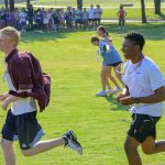 - A new student walks off the field after losing a flag in flag tag. (Photo by John Stai)