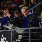 Mike Cope, director of ministry outreach at Pepperdine University and former preacher at Highland Church of Christ in Abilene, served as the keynote speaker. Traditions such as the reading of Paul’s sermon on Mars Hill, the hymn All Hail the Power of Jesus’ Name and performances from the Big Purple Band and Grand Chorus helped open the year in worship and reflection.