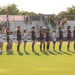 - Players and members from the Sting Soccer organization stand for the national anthem. (Photo by Callie Brimberry)