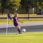 - Katy Gregson, junior defender from Frisco, takes the ball downfield. (Photo by Callie Brimberry)