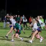 Intramurals capped off the rivalry week of flag football season with two champ games on Thursday night. The women of Sigma Theta Chi defeated the women of Ko Jo Kai in a 7-6 victory. Following the women’s game, the fraternity of Galaxy won 12-7 against Gamma Sigma Phi.