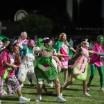 - Members of Sigma Theta Chi’s recent pledge class dance during halftime at the rivalry flag football game. (Photo by Ashley Henderson)