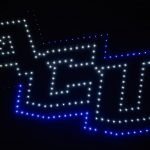 - The drone show concludes with the ACU logo displayed in the sky. (Photo by Daniel Curd)