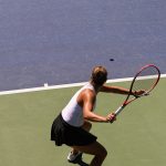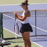 - Masha Vrsalovic, senior from Cochabamba, Bolivia, prepares for her match. (Photo by Callie Brimberry)