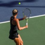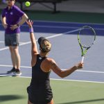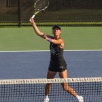 - Masha Vrsalovic, senior from Cochabamba, Bolivia, hits the ball during her match. (Photo by Callie Brimberry)