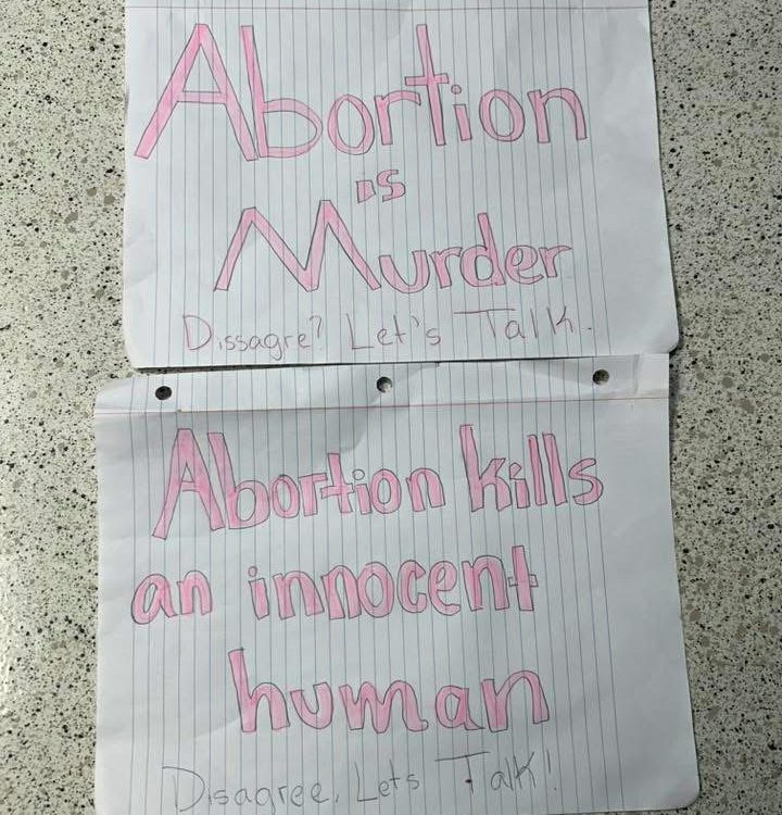October 27, 2025 by Ashley Henderson Leave a Comment ACU For Life displayed a sign on its table in the campus center. The sign at the top is the original sign from the controversy, and the sign below includes the changes made after a discussion with administration. (Photo courtesy of ACU For Life)