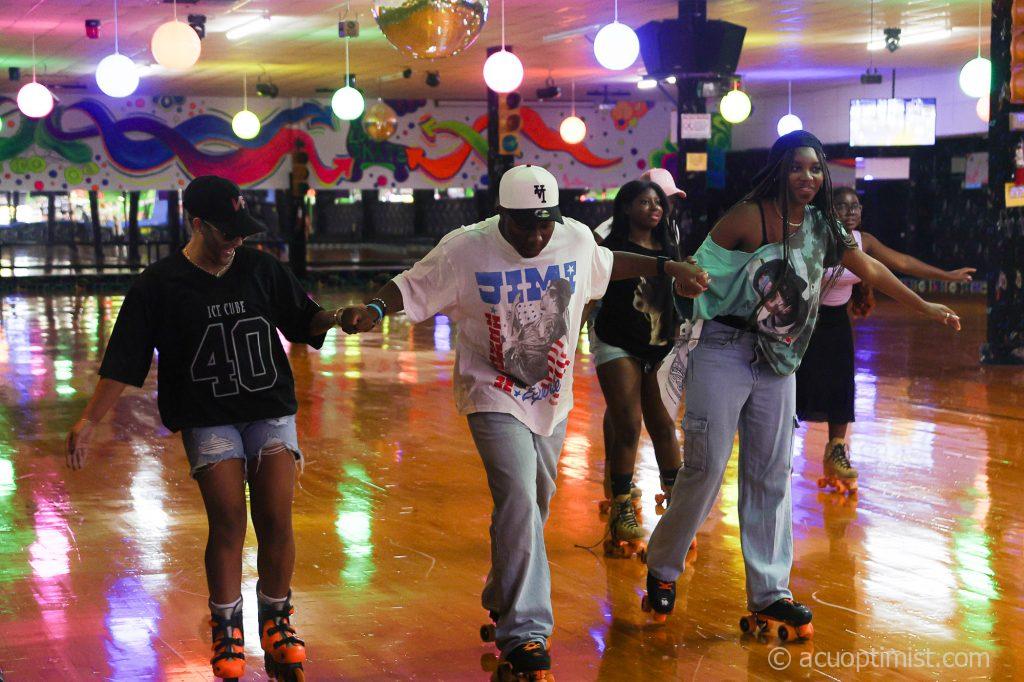 October 18, 2025 by Callie Brimberry Leave a Comment Three students hold hands while skating. (Photo by Callie Brimberry)