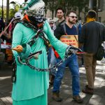 - A ‘No Kings’ protestor wears a costume mocking President Donald Trump during the protest in Washington, D.C. (Photo by Ashley Henderson)