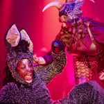 - Members of the fairy-tale ensemble lament their banishment to Shrek’s swamp. (Photo by Daniel Curd)