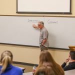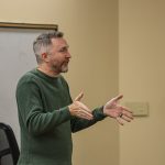- Chris Riley, associate professor of government and criminal justice, teaches a class during Dating Week. (Photo by Callie Brimberry)