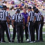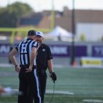 - North Alabama Football Head Coach Brent Dearmon expresses his frustration with the referee. (Photo by Ashley Henderson)