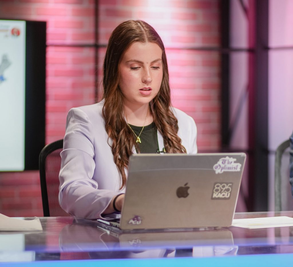 September 26, 2025 by Ashley Henderson Leave a Comment Ashley Henderson, editor in chief of The Optimist, reports election results during the 2024 ACUTV/Optimist election show. (Photo by Daniel Curd)