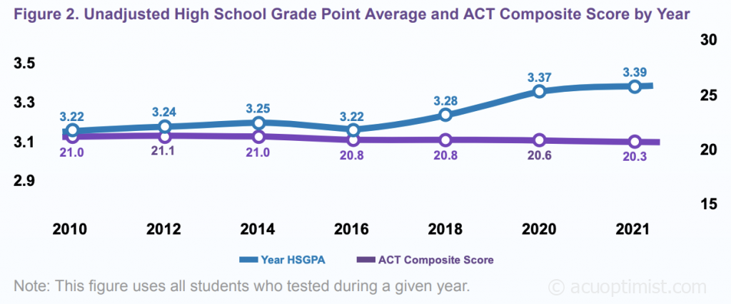 Graph from ACT research report “Grade Inflation Continues to Grow in the Past Decade”
