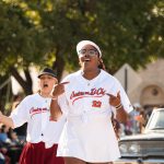- A member of the Women of GATA smiles at the camera as she walks in the Homecoming Parade. (Photo by Callie Brimberry)
