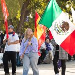 - A student carries the Mexico flag, surrounded by others carrying international flags for ISA. (Photo by Callie Brimberry)
