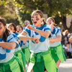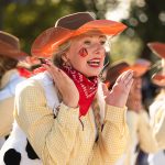 - Chloe Muncy, sophomore nursing major from Abilene, sings and marches in the Homecoming Parade alongside members of Ko Jo Kai. (Photo by Callie Brimberry)