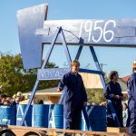 - The Fraternity of Galaxy’s newest pledge class dresses as oil rig workers for their Homecoming float. (Photo by Ashley Henderson)