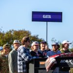- Members of Sub T-16 carry a sign that says “GATA” during the 2025 Homecoming Parade. (Photo by Ashley Henderson)
